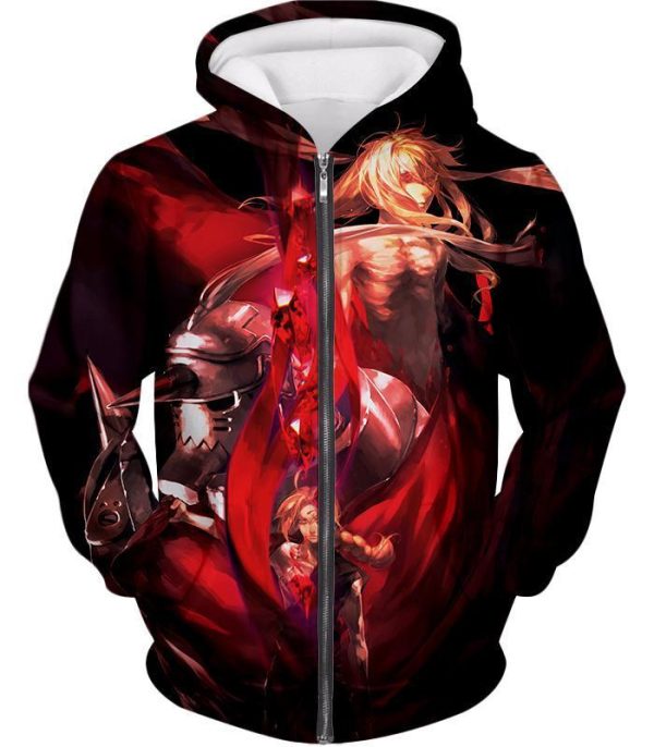 Fullmetal Alchemist Fighting For Life Brothers Edward X Alphonse Elrich Promo Zip Up Hoodie