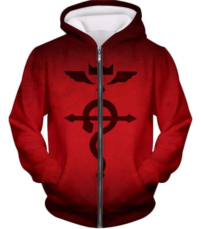 Fullmetal Alchemist Mystical Alchemical Symbol Flamel Red Zip Up Hoodie