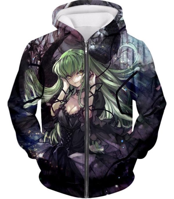 Green Haired C.C. The Grey Witch Of Britannia Cool Dark Anime Zip Up Hoodie