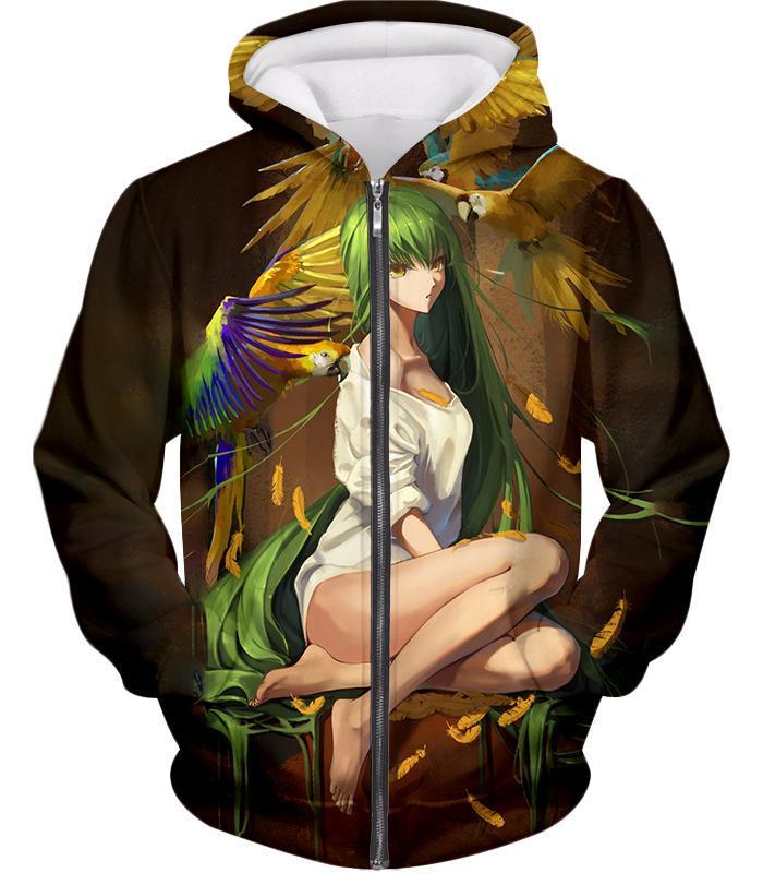 Green Haired Sexy Girl C.C Cool Anime Poster Zip Up Hoodie