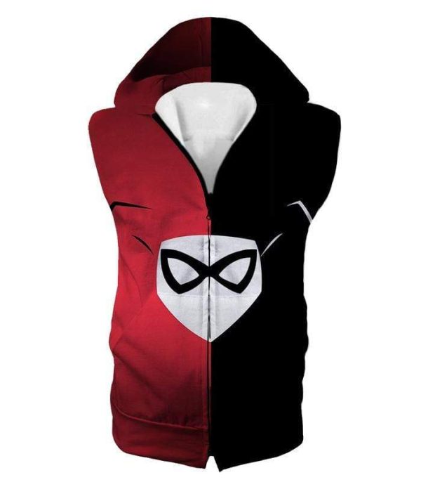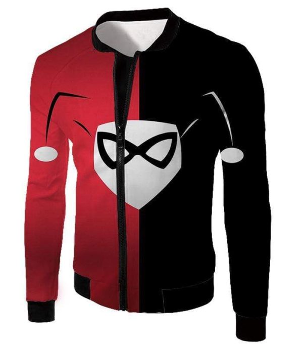 Harley Quinn Logo Promo Red And Black Zip Up Hoodie