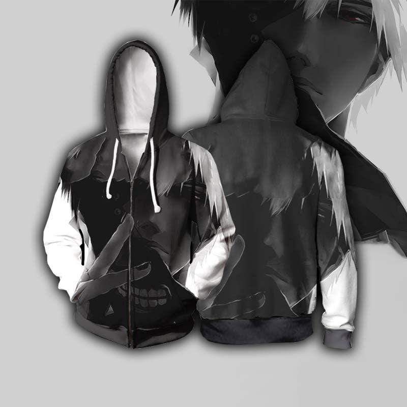 Ken Kaneki Hoodie Mask Contrast Hoodie – Tokyo Ghoul Zip Up Hoodie Jacket
