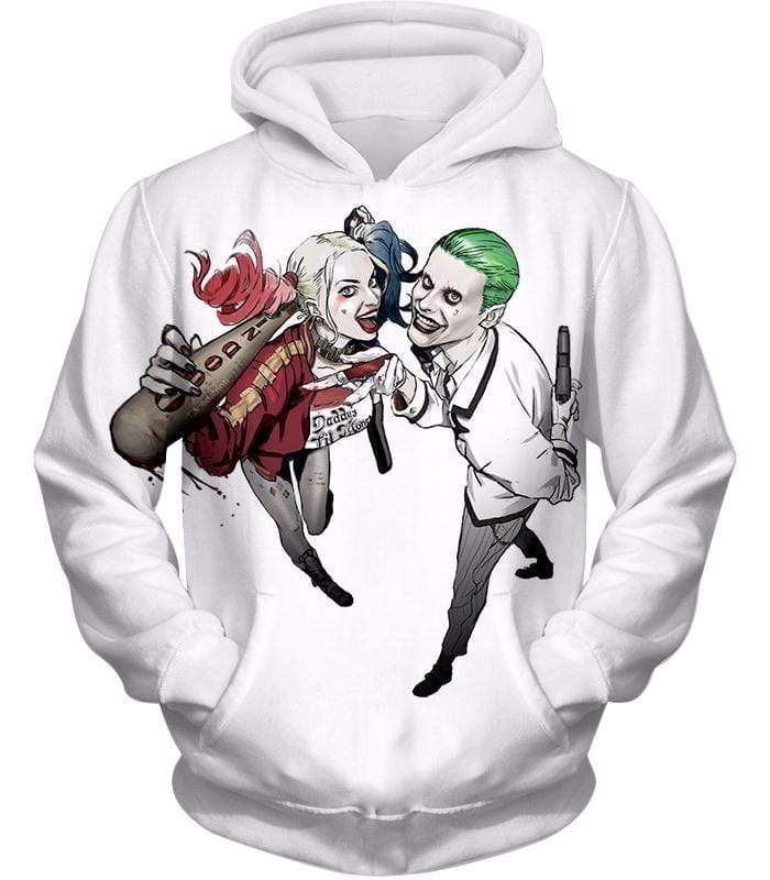 King And Queen Of Gotham City Cool Harley Quinn X Joker White Zip Up Hoodie