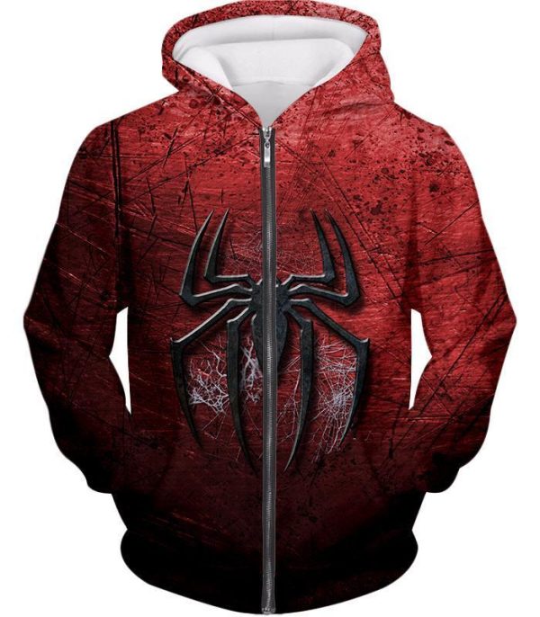 Marvels Ultimate Spiderman Logo Cool Scratched Red Zip Up Hoodie