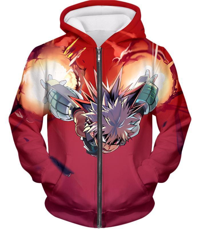 My Hero Academia Hoodie – My Hero Academia Exploding Hero Bakugo Katsuki Ultimate Action Red Zip Up Hoodie