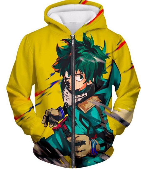 My Hero Academia Hoodie – My Hero Academia Izuki Midoriya Aka Deku Anime Promo Yellow Zip Up Hoodie