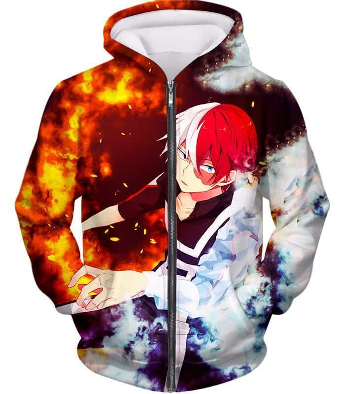 My Hero Academia Hoodie – My Hero Academia Super Anime Hero Shoto Todoroki Quirk Half Cold Half Hot Action Hoodie