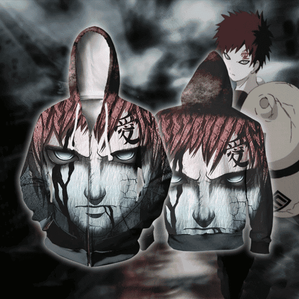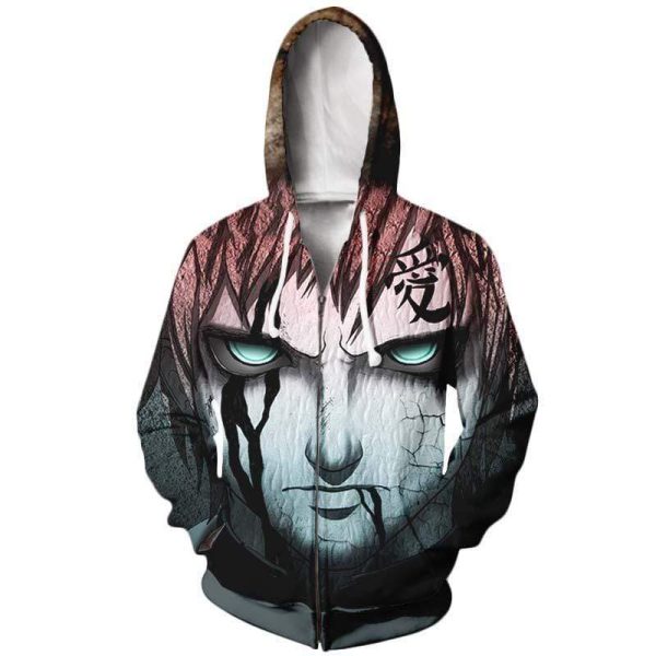 Naruto Shippuden Gaara – Naruto 3D Printed Zip Up Hoodie Jacket