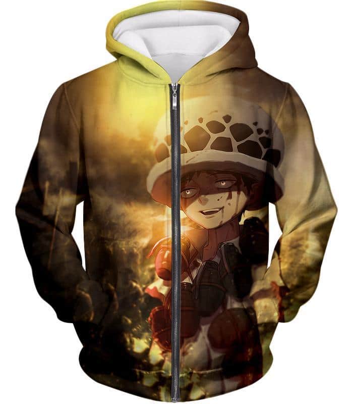 One Piece Zip Up Hoodie – One Piece Painful Past Dying Kid Trafalgar D Law Zip Up Hoodie