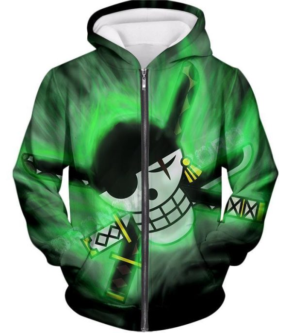 One Piece Zip Up Hoodie – One Piece Roronoa Zoro Logo Green Zip Up Hoodie