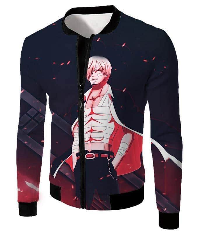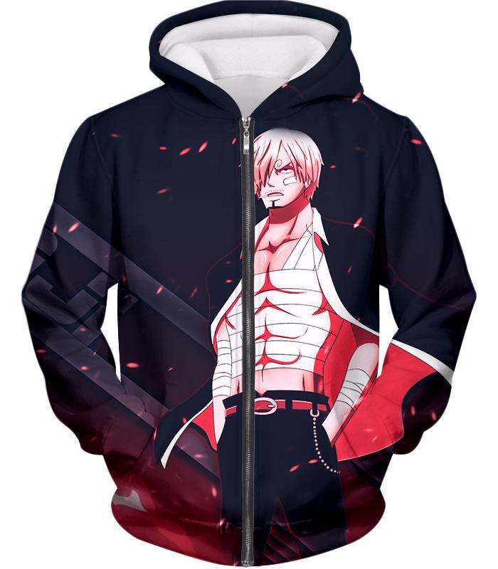 One Piece Zip Up Hoodie – One Piece Smoking Pirate Prince Vinsmoke Sanji Black Zip Up Hoodie