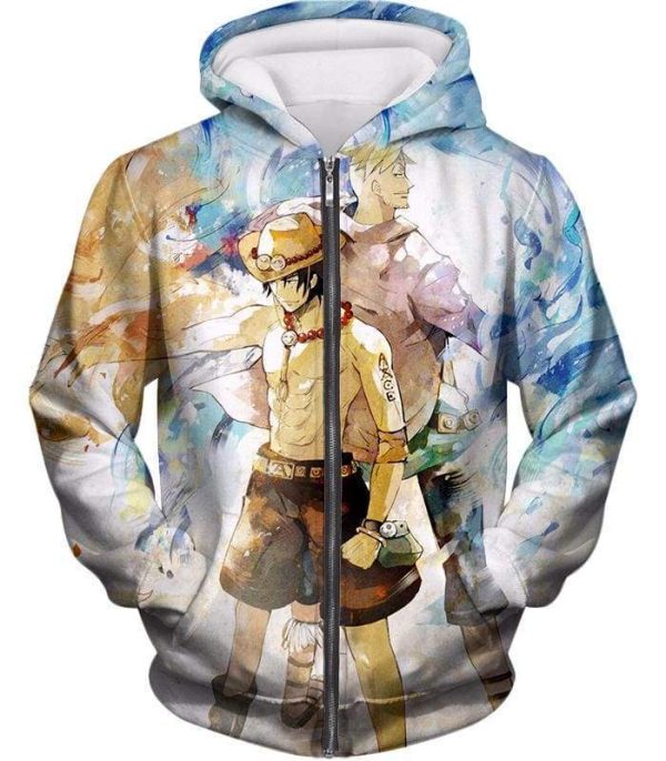 One Piece Zip Up Hoodie – One Piece Whitebeard Pirates Fire Fist Ace And Marco The Phoenix Action Zip Up Hoodie
