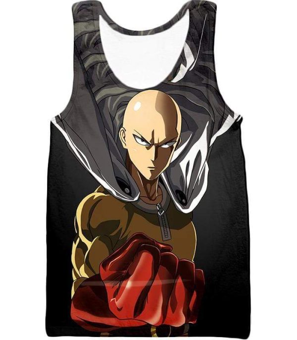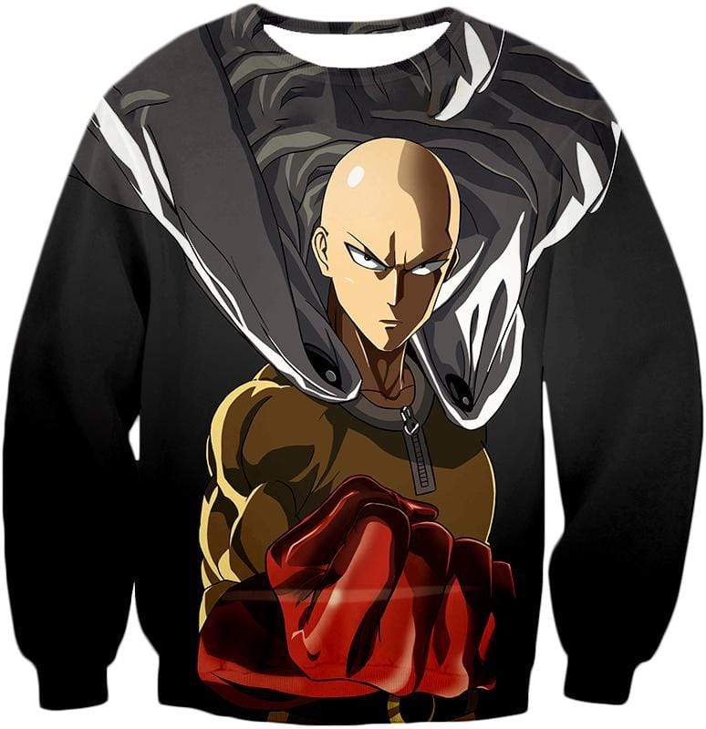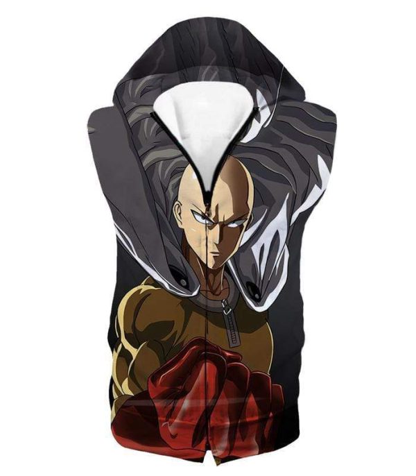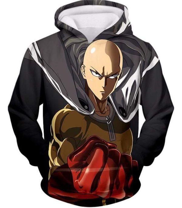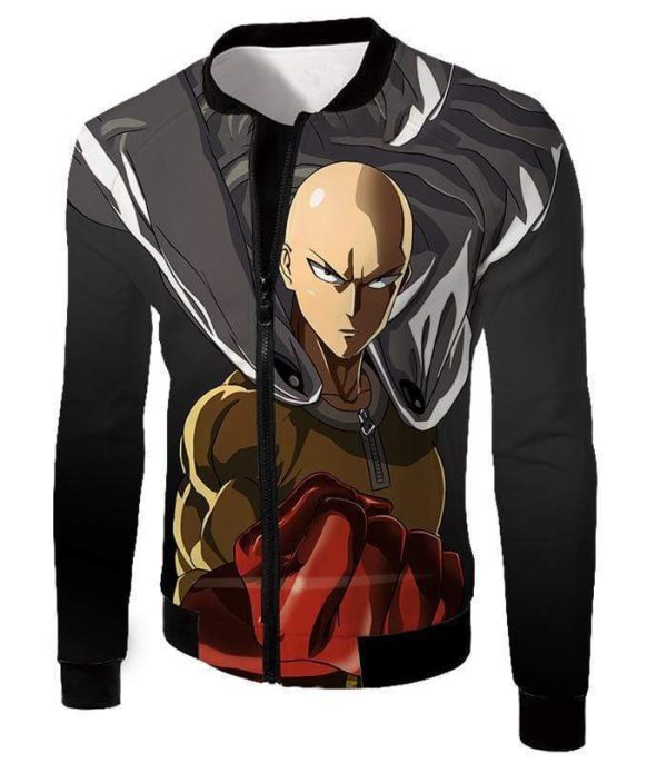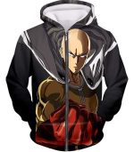 One Punch Man Most Powerful Hero Saitama Promo Black Zip Up Hoodie