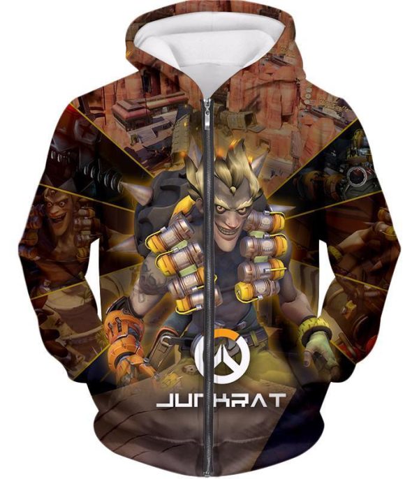 Overwatch Game Defense Hero Junkrat Zip Up Hoodie