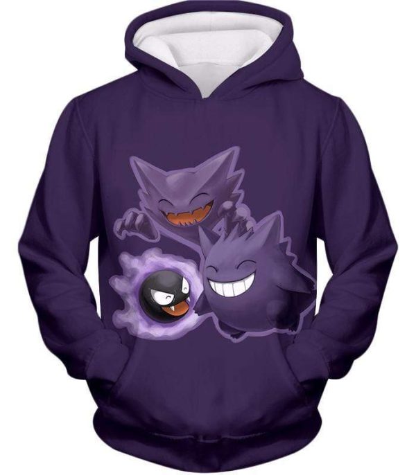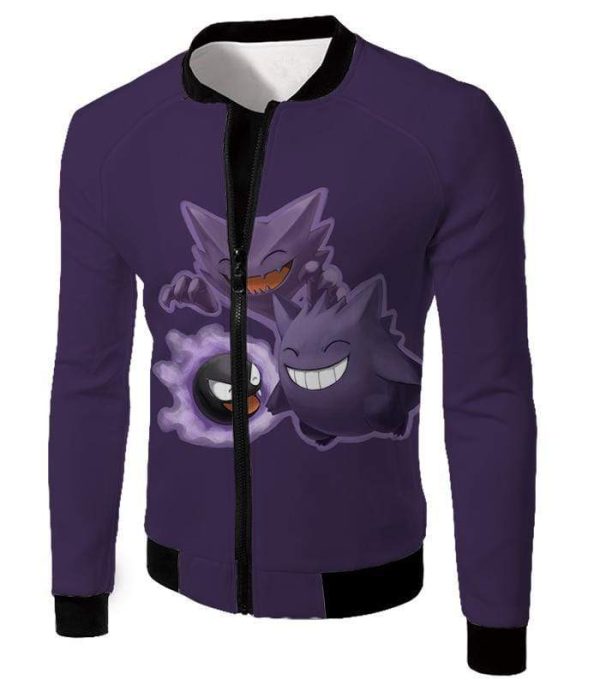 Pokemon Ghost Pokemon Trio Ghastly Hunter And Gengar Cool Anime Zip Up Hoodie – Pokemon Zip Up Hoodie