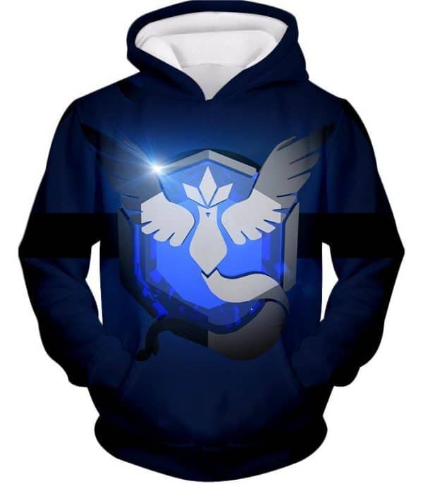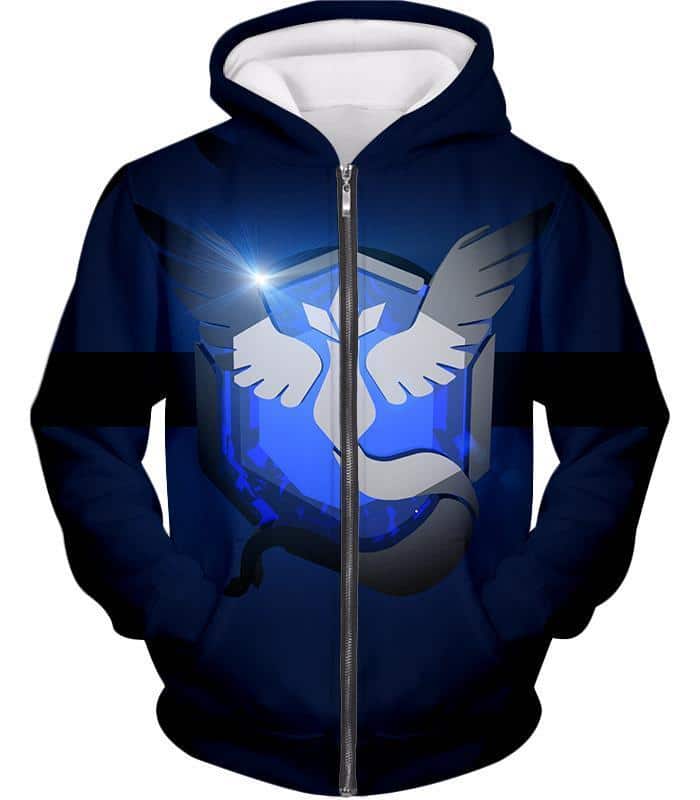 Pokemon Zip Up Hoodie – Pokemon Articuno Mystic Legendary Pokemon Logo Black Zip Up Hoodie
