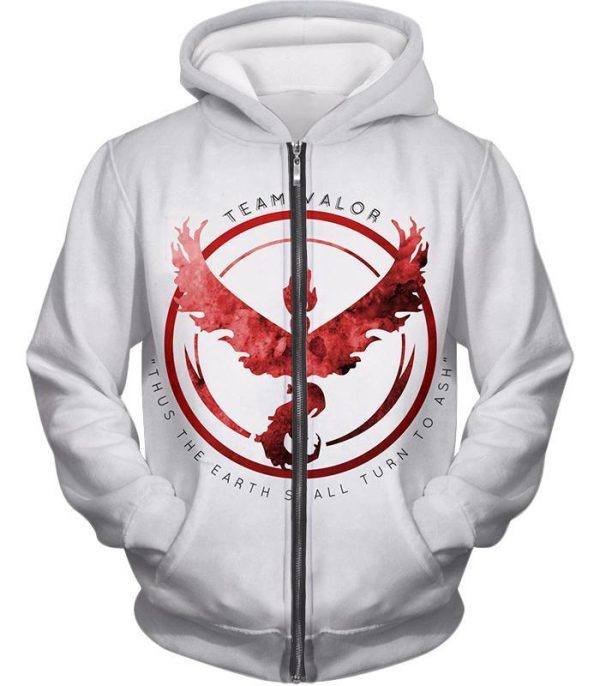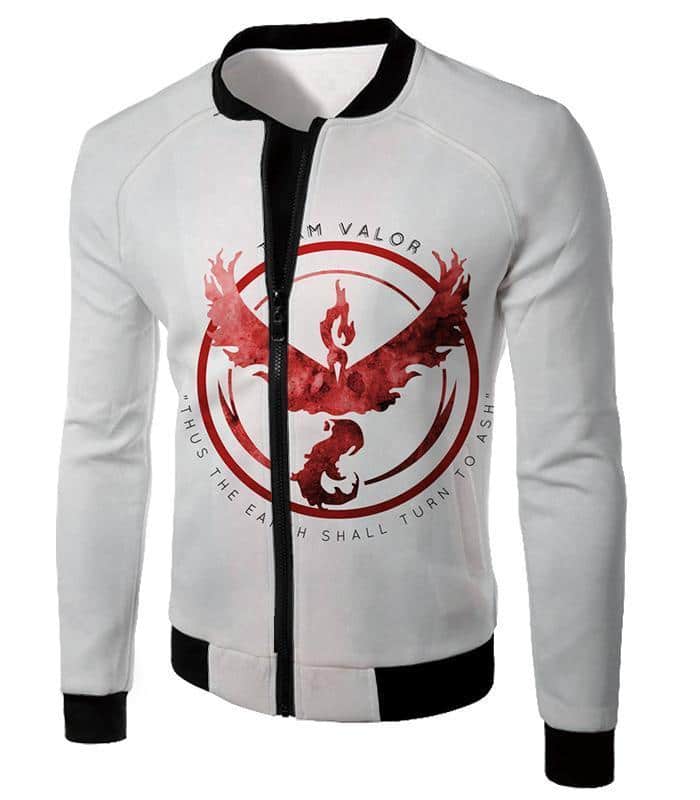 Pokemon Zip Up Hoodie – Pokemon Cool Fire Pokemon Moltress Logo Quoted White Zip Up Hoodie