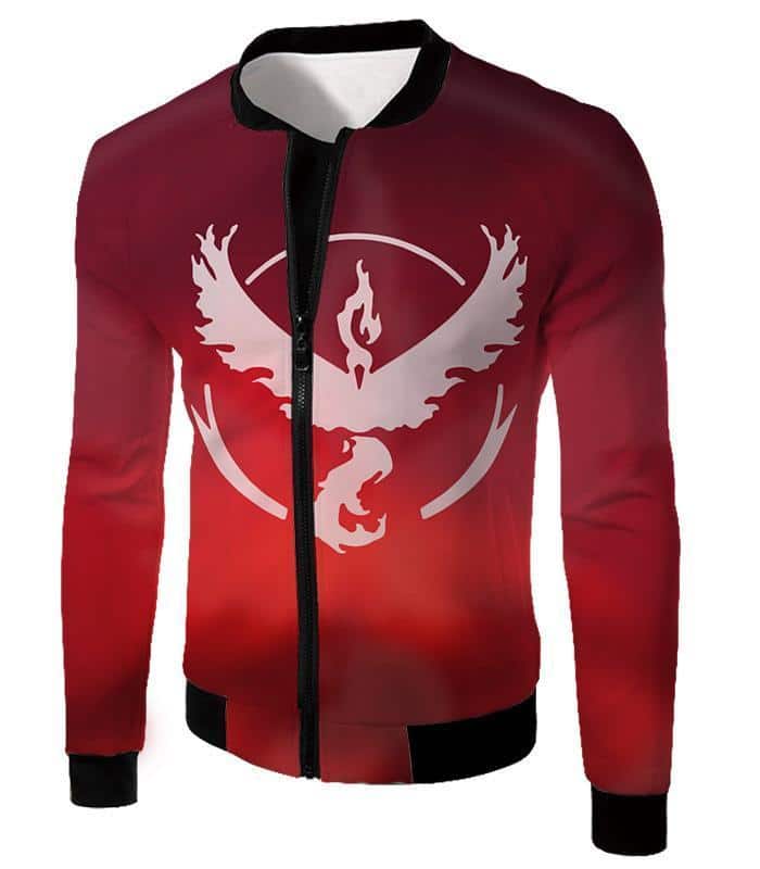 Pokemon Zip Up Hoodie – Pokemon Legendary Fire Pokemon Moltress Symbol Red Zip Up Hoodie
