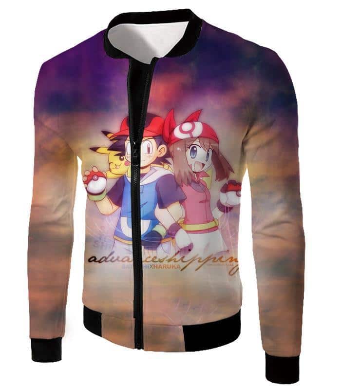 Pokemon Zip Up Hoodie – Pokemon Pokemon Advance Generation Trainers Ash And May Zip Up Hoodie