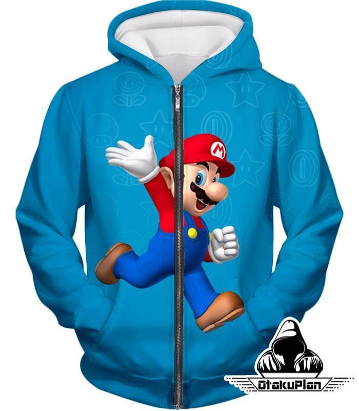 Super Cool Game Hero Mario Cool Promo Blue Zip Up Hoodie