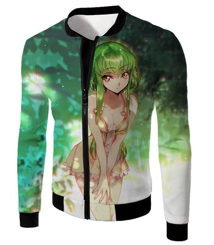 Super Sexy Green Haired Anime Girl C.C Cool Promo Zip Up Hoodie