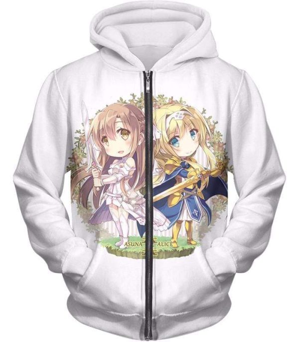 Sword Art Online Anime Girl Asuna And Alice Cool Anime Promo White Zip Up Hoodie – Sword Art Online Zip Up Hoodie