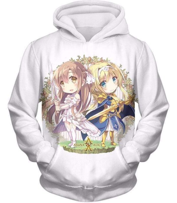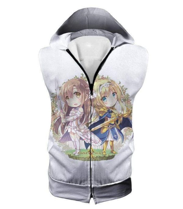 Sword Art Online Anime Girl Asuna And Alice Cool Anime Promo White Zip Up Hoodie – Sword Art Online Zip Up Hoodie