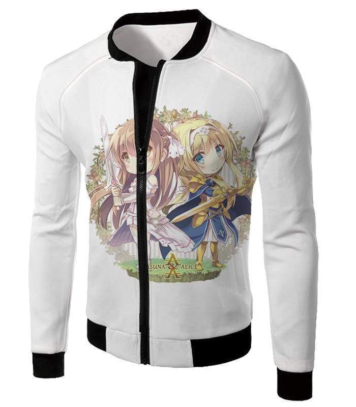 Sword Art Online Anime Girl Asuna And Alice Cool Anime Promo White Zip Up Hoodie - Sword Art Online Zip Up Hoodie $19.95$37.95