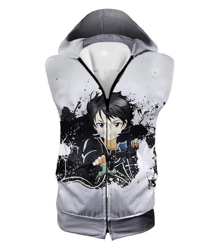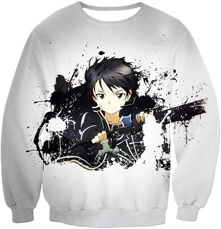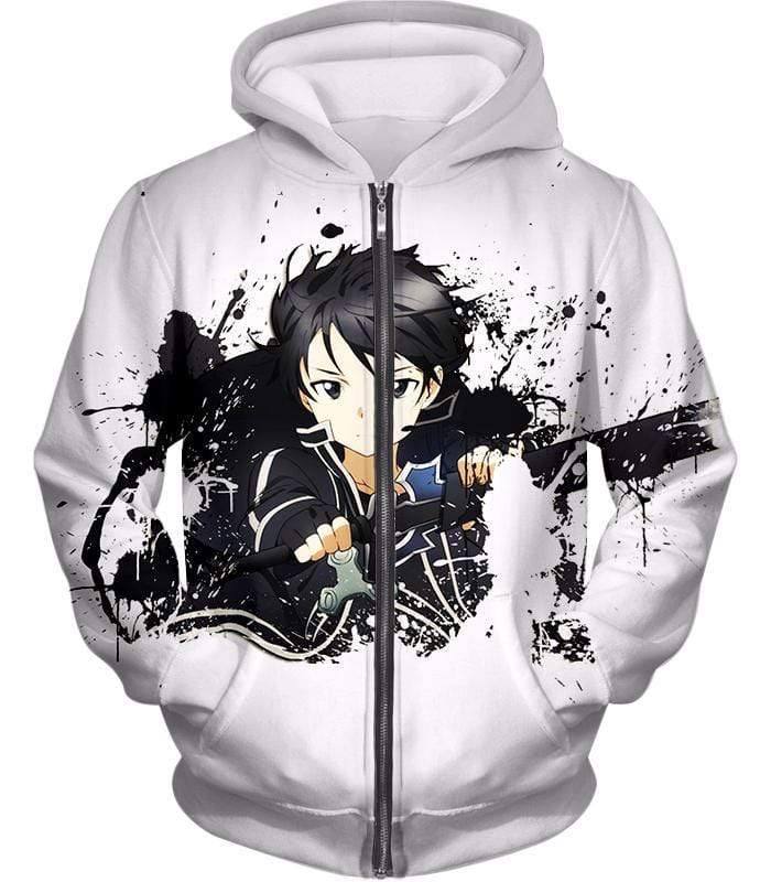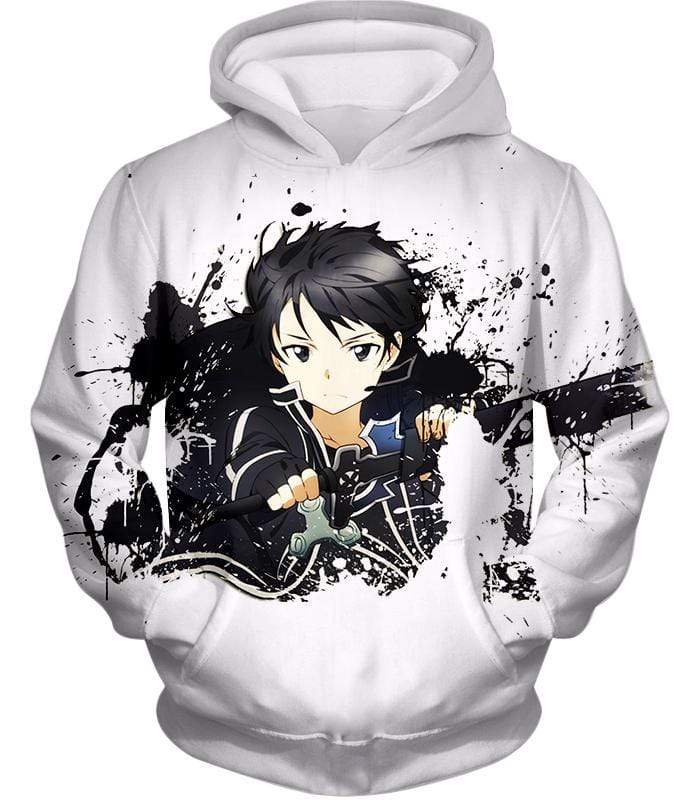 Sword Art Online Cool Hero Kirigaya Kazuto Aka Kirito Action White Hoodie - Sword Art Online Hoodie $19.95$34.95