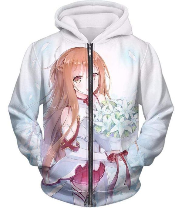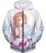 Sword Art Online Lovely Anime Girl Yuuki Asuna Cool Promo White Zip Up Hoodie – SAO Merch Zip Up Hoodie