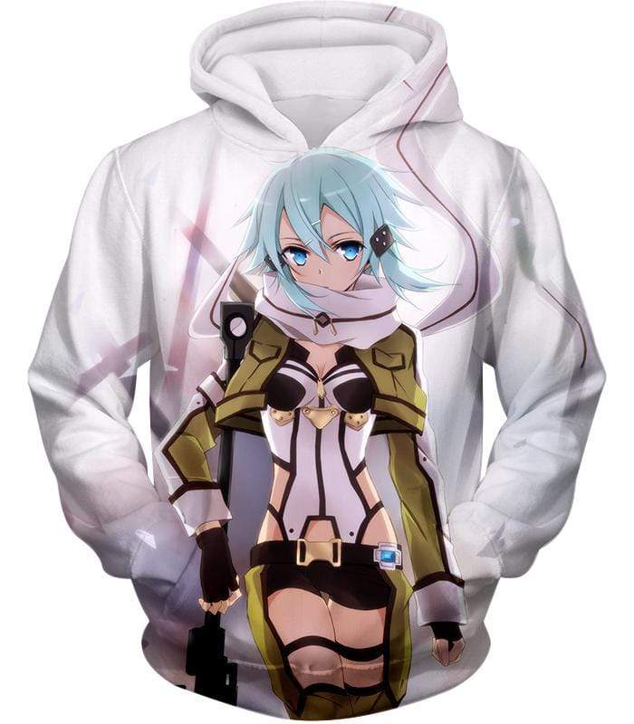 Sword Art Online Ultimate Sniper Gun Gale Online Player Asada Shino Cool White Hoodie – Sword Art Online Hoodie