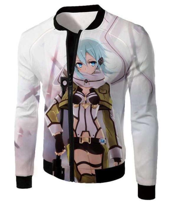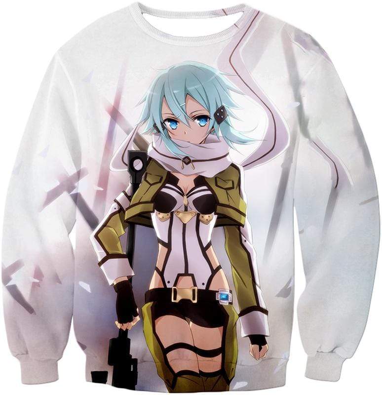 Sword Art Online Ultimate Sniper Gun Gale Online Player Asada Shino Cool White Hoodie – Sword Art Online Hoodie