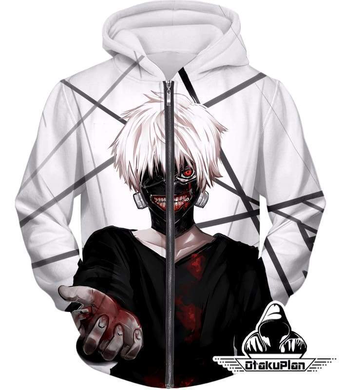 Tokyo Ghoul Hoodie – Tokyo Ghoul One Eyed Ghoul Ken Kaneki Anime White Hoodie