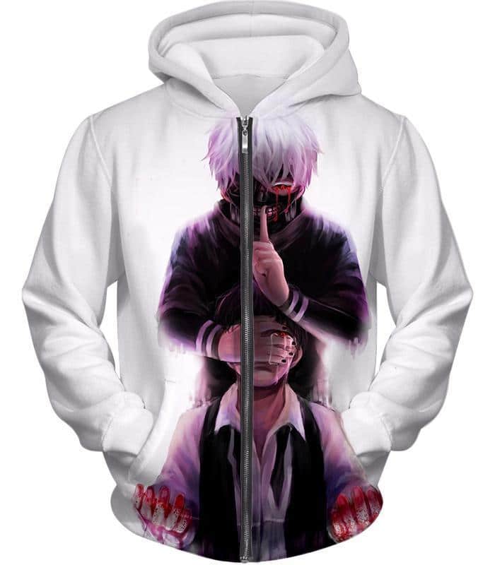 Tokyo Ghoul Human Turned Ghoul Ken Kaneki White Zip Up Hoodie – Anime Hoodie