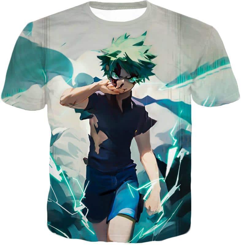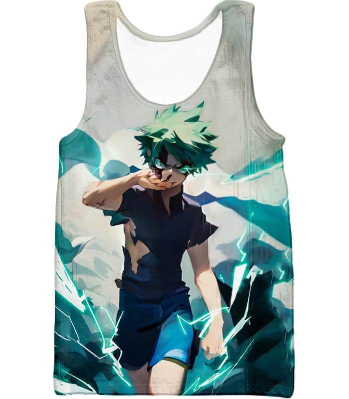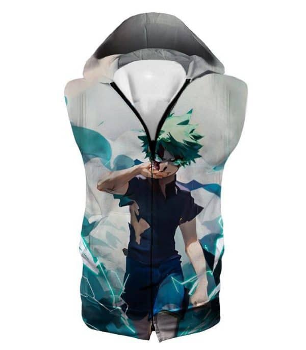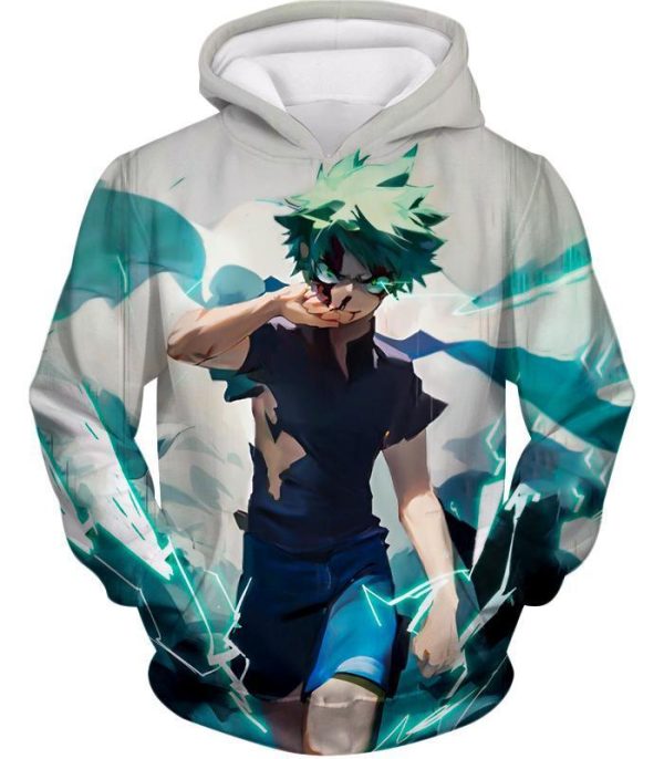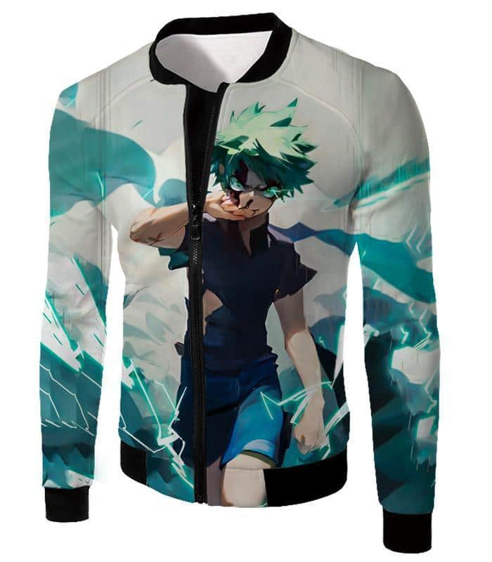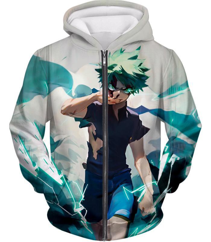 Tokyo Ghoul Zip Up Hoodie – My Hero Academia Izuki Midoriya Incredible Hero Action White Zip Up Hoodie