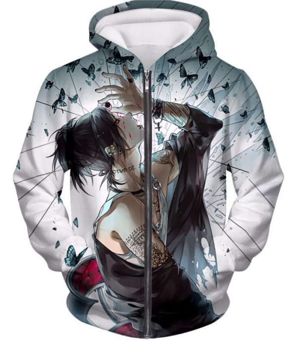 Tokyo Ghoul Zip Up Hoodie – Tokyo Ghoul Ghoul No Face Uta Anime Print Zip Up Hoodie