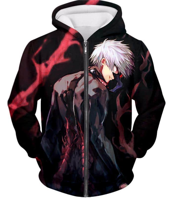 Tokyo Ghoul Zip Up Hoodie – Tokyo Ghoul Super Ghoul Ken Kaneki The Black Reaper Zip Up Hoodie