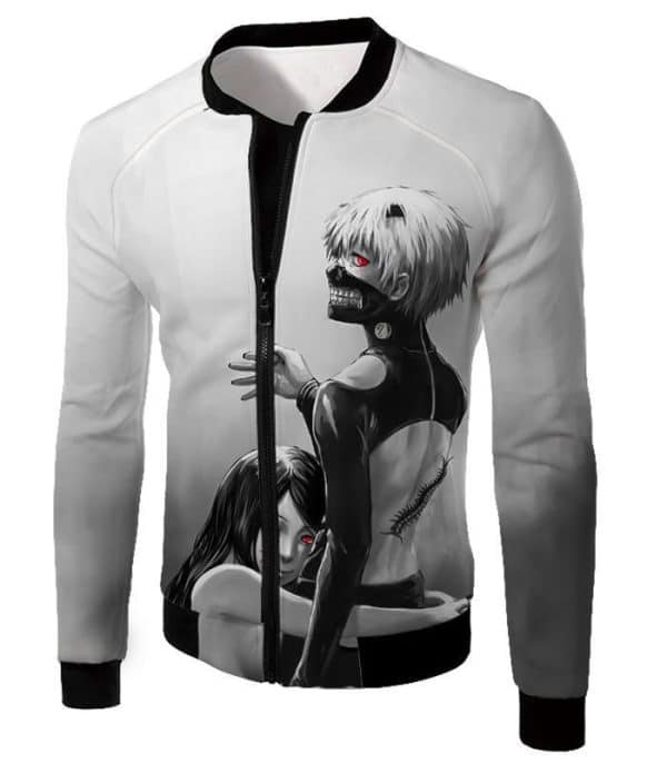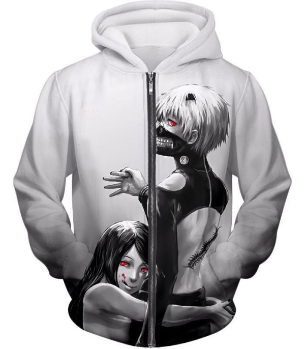 Tokyo Ghoul Zip Up Hoodie – Tokyo Ghoul Tokyo Ghoul Black And White Ken Kaneki Animation Zip Up Hoodie